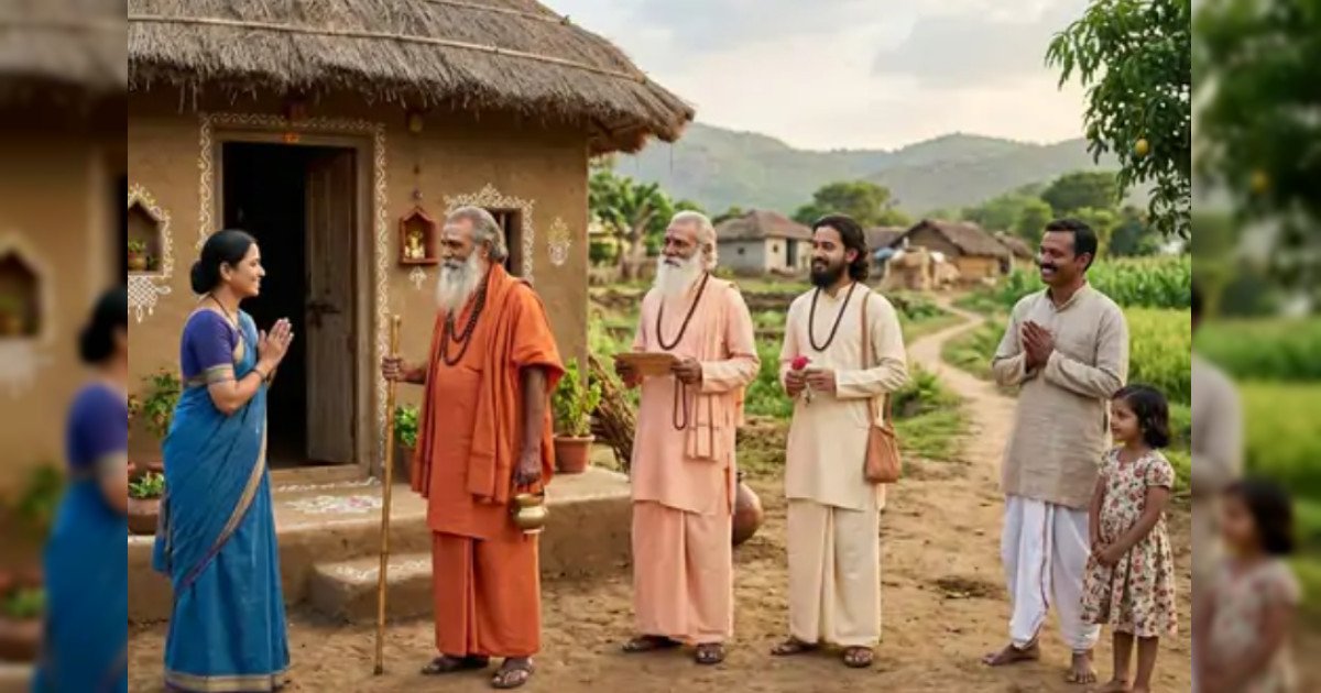 शाम को पति और उनकी छोटी बेटी घर लौट आए। महिला ने संतों की बात उन्हें बताई। पति ने संतों को भोजन देने की अनुमति दे दी।